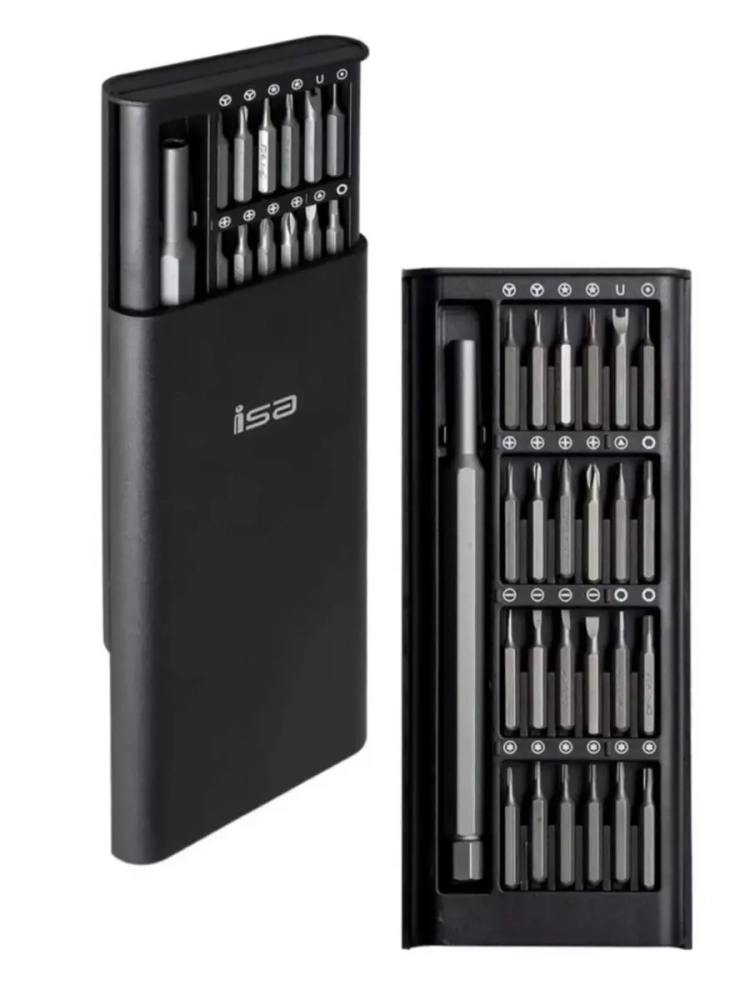 Набор отверток PP-011 в пластиковом пенале (24 насадки) ISA.Профессиональный набор отверток для ремонта телефонов и оргтехники включает в себя прецизионную отвертку и 24 биты (варианты бит представлены на фотографии), изготовленных с высокой точность из прочной стали , благодаря чему набор прослужит длительное время. Удобный эргономичный пластиковый кейс хорошо фиксирует биты в своих ячейках. Кейс легко открывается при нажатии сверху.