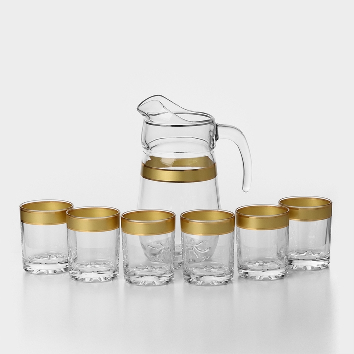 Набор питьевой с золотой каймой «Ампир», 7 предметов: кувшин 1,34 л, стаканы 250 мл, 6 шт