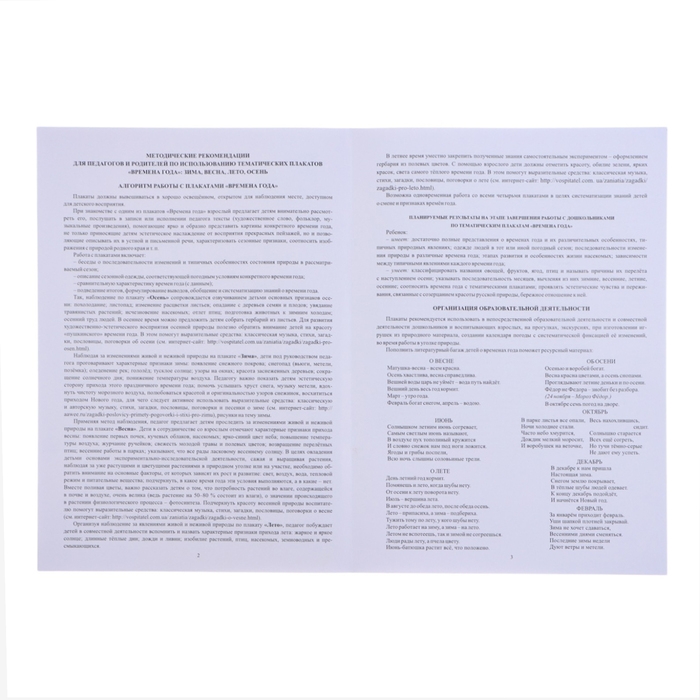 Набор плакатов "Времена года" с методическими рекомендациями, 4 плаката, А3