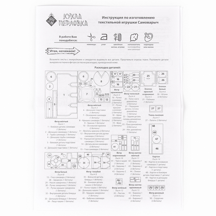 Набор по изготовлению текстильной игрушки «Самоварыч», высота — 19 см