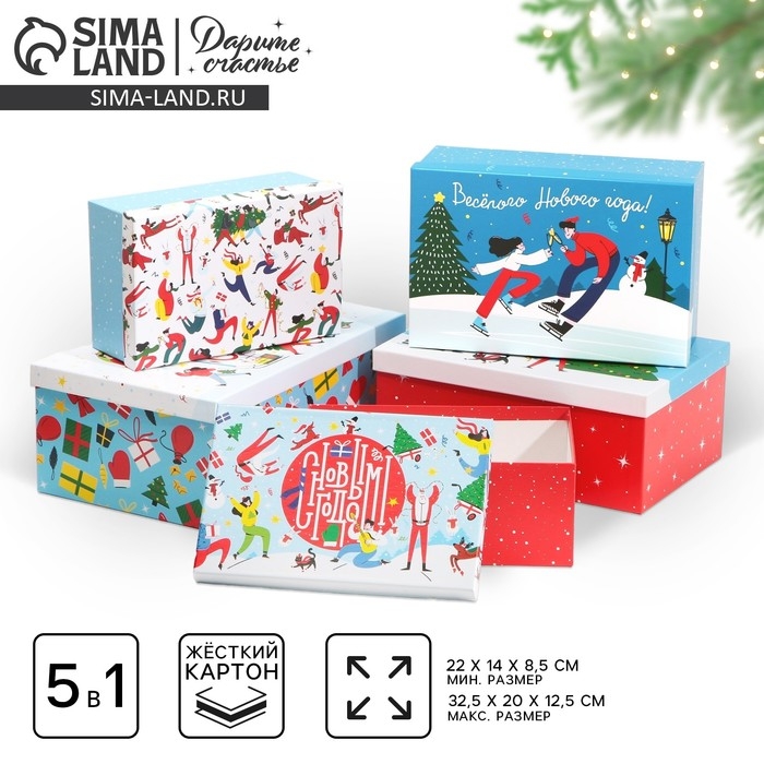 Набор подарочных коробок 5 в 1 «Волшебных моментов», 32,5 х 20 х 12,5 - 22 х 14 х 8,5 см, Новый год