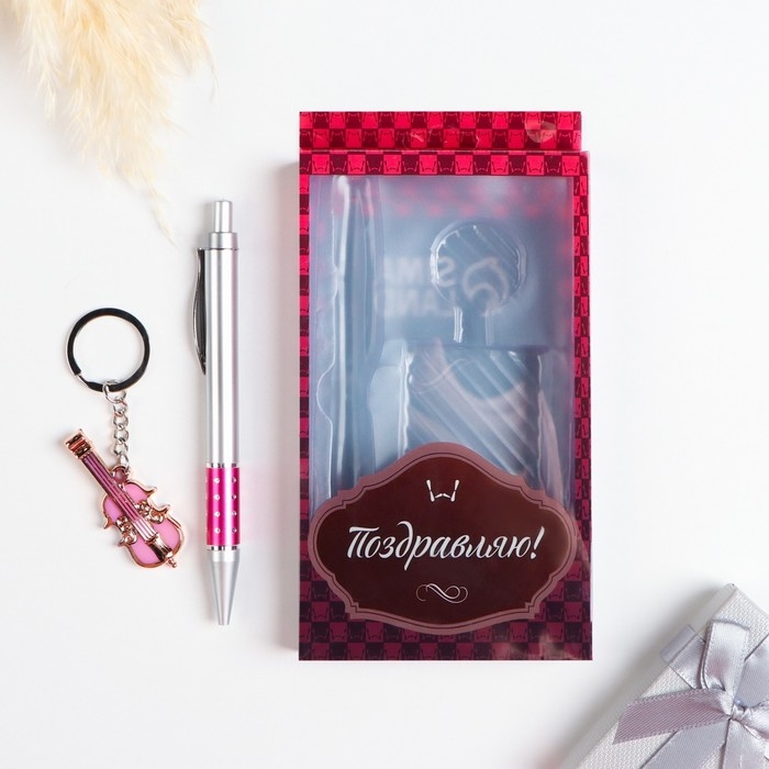 Набор подарочный 2в1 (ручка, брелок скрипка) микс