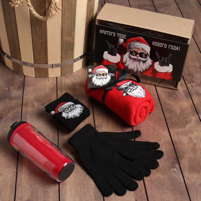 Набор подарочный "Ho-ho" плед, носки, перчатки, термостакан
