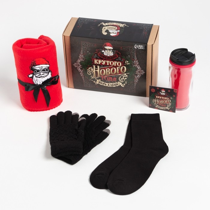 Набор подарочный «Крутого года» плед, перчатки, носки, термостакан