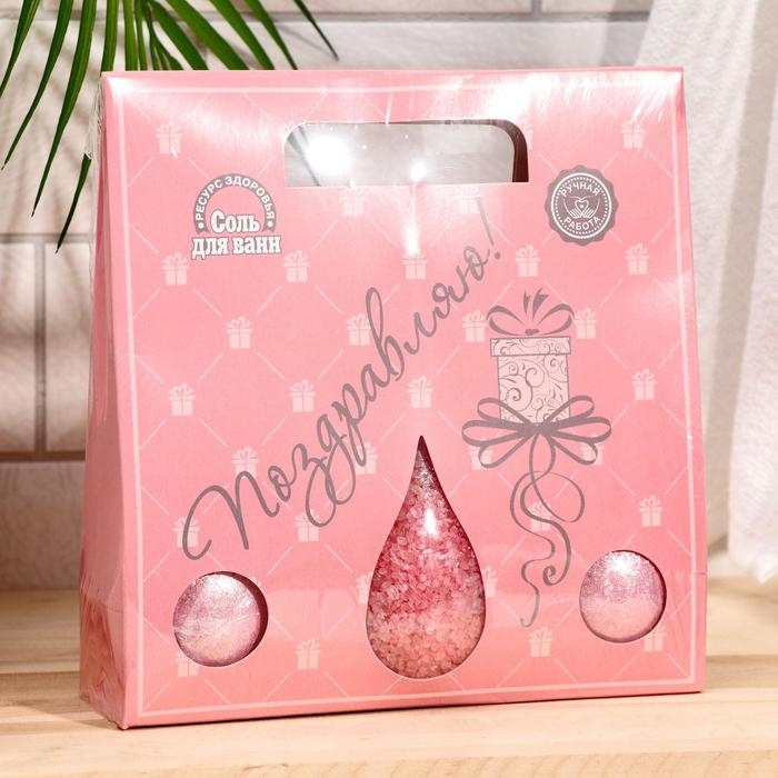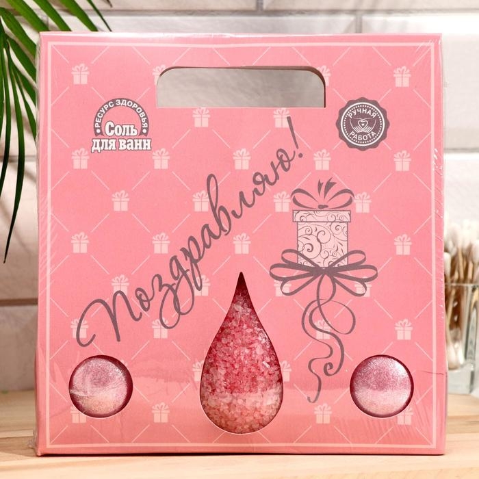 Набор подарочный "Поздравляю!", соль и бомбочки для ванны, малина