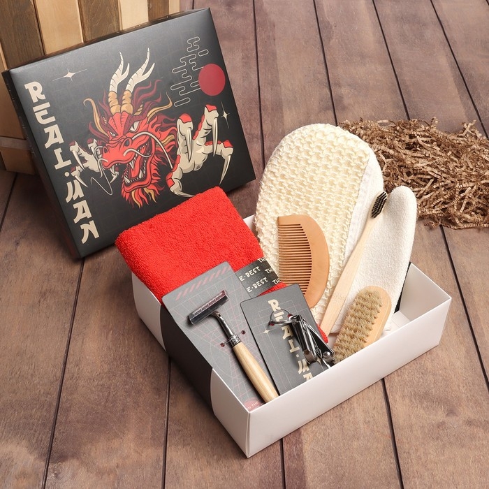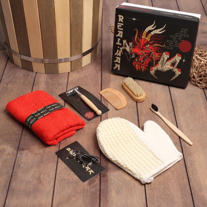 Брелок, Бритвенный станок, Варежка-мочалка, Зубная щётка, Полотенце, Расчёска для волос, Щётка-массажер