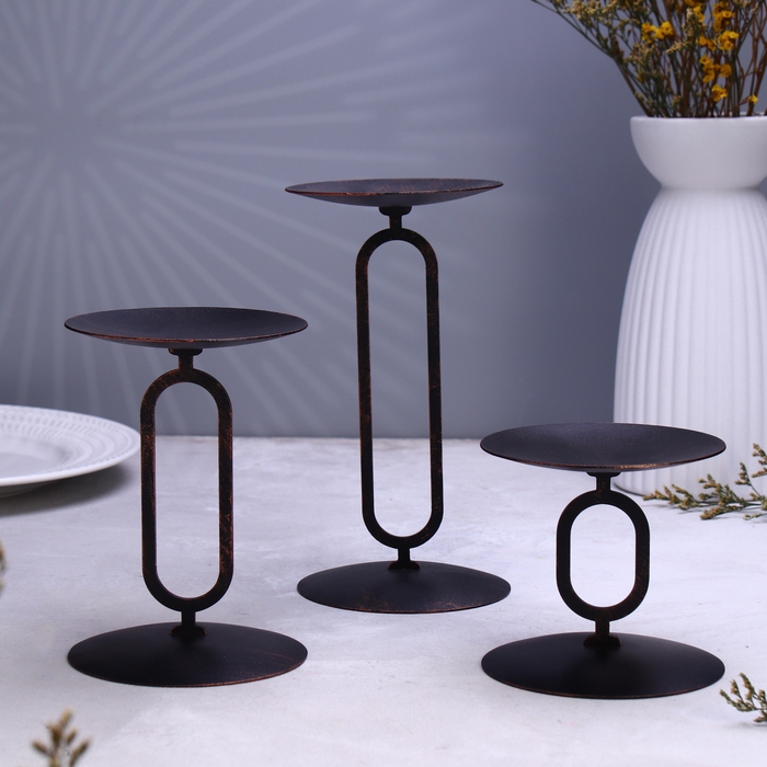 Набор подсвечников 10х20; 10х15; 10х10 см, чёрный