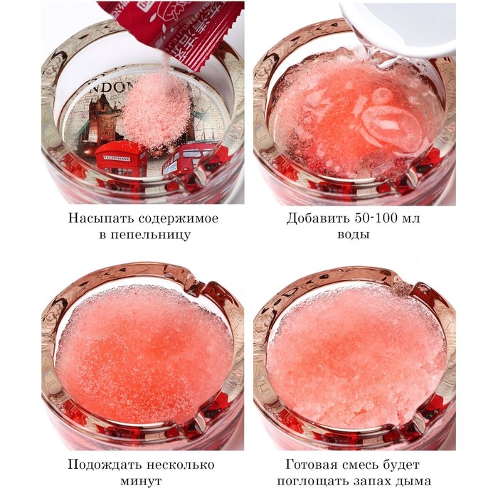 Нейтрализатор табачного дыма эффективно борется с неприятными запахами табака и от окурков, препятствует тлению пепла, прекрасно подойдет для пепельницы. Огнегасящий песок для пепельниц имеет приятный аромат, который подойдёт для дома, автомобиля, курительных комнат и любых других закрытых помещений. Одно из главных преимуществ песка для пепельниц - его длительность, эффективность и легкое очищение пепельницы после использования.