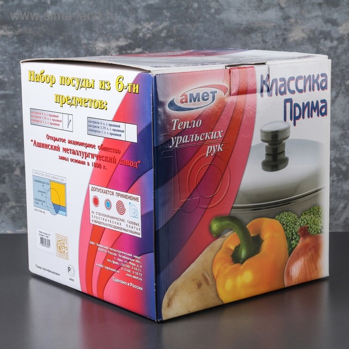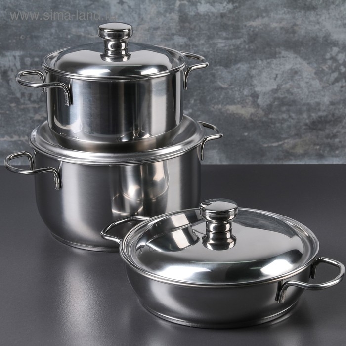 Набор посуды, 3 предмета: две кастрюли 3 л, 1,75 л, сковорода 1 л, капсульное дно