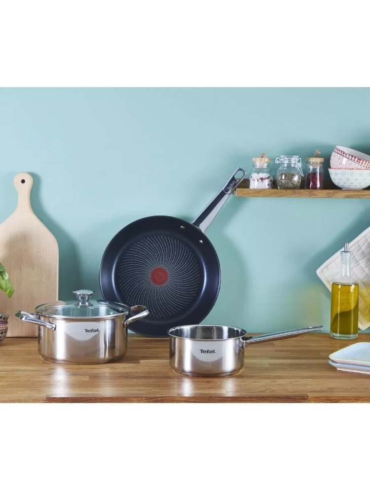 Благодаря своему толстому инкапсулированному дну, эта посуда равномерно распределяет нагрев во время приготовления и не деформируется спустя время. Покрытие Titanium с частицами титана гарантирует превосходные антипригарные свойства кухонного набора Тефаль, а также его легкую очистку день за днем.