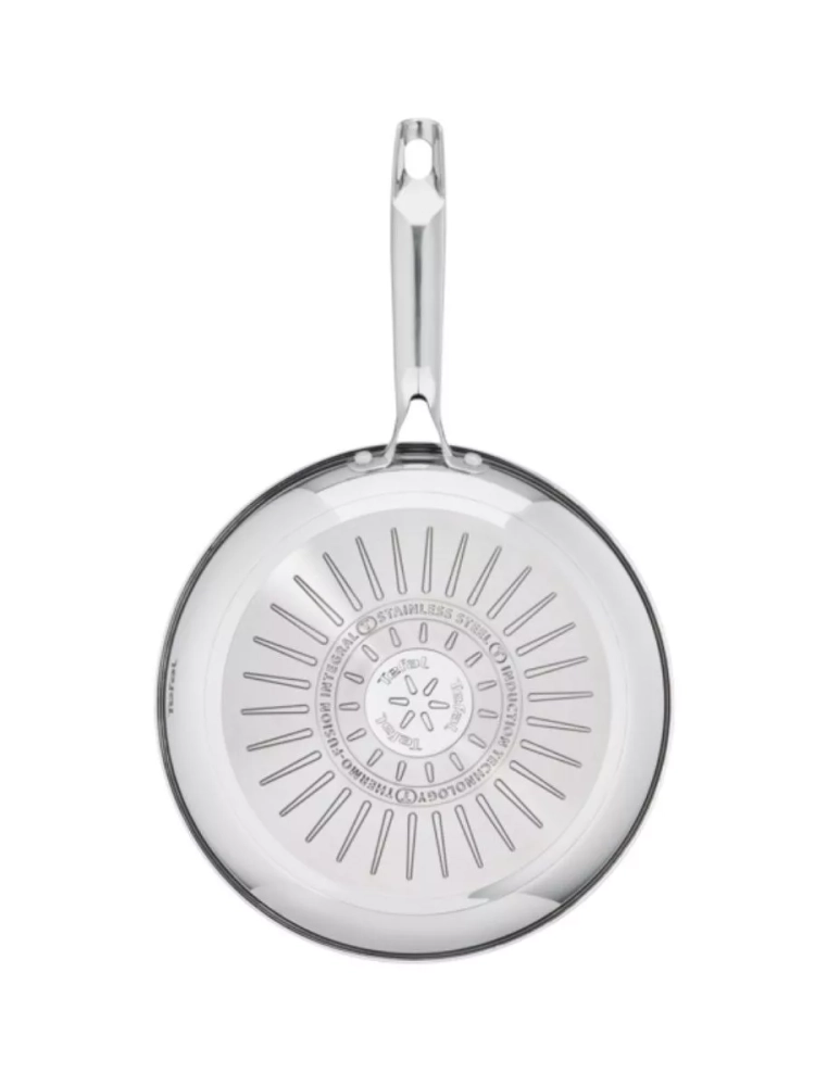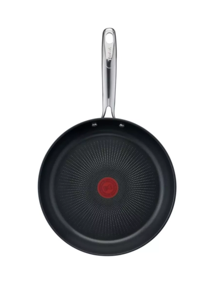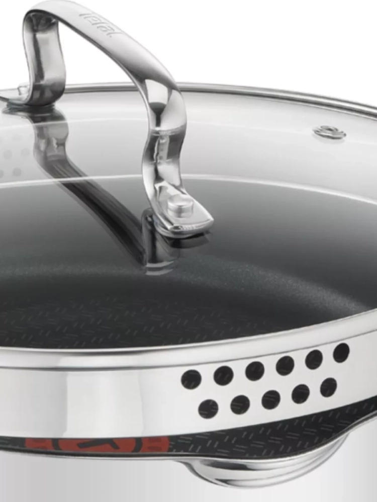 Сковорода Тефаль имеет прочное титановое антипригарное покрытие, которое не содержит PFOA, свинец, кадмий и оно разработано таким образом, чтобы выдерживать ежедневную длительную готовку. Индикатор Thermo-Signal становится полностью красным, когда посуда достигает идеальной температуры для начала приготовления.