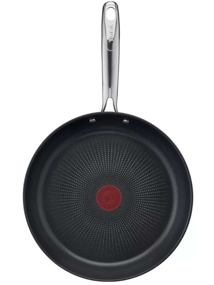 Сковорода Тефаль имеет прочное титановое антипригарное покрытие, которое не содержит PFOA, свинец, кадмий и оно разработано таким образом, чтобы выдерживать ежедневную длительную готовку. Индикатор Thermo-Signal становится полностью красным, когда посуда достигает идеальной температуры для начала приготовления.