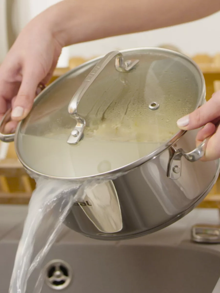 На внутренней поверхности толстых стенок кастрюль расположена точная мерная шкала, которая позволяет удобно измерять жидкие ингредиенты и объем готовых блюд. Благодаря стеклянным крышкам со встроенным паровыпуском вы сможете с легкостью наблюдать за процессом приготовления пищи, не нарушая его, и сохранять оптимальное давление внутри, а толстое инкапсулированное дно отлично распределит нагрев по всей посуде не деформируется спустя время.