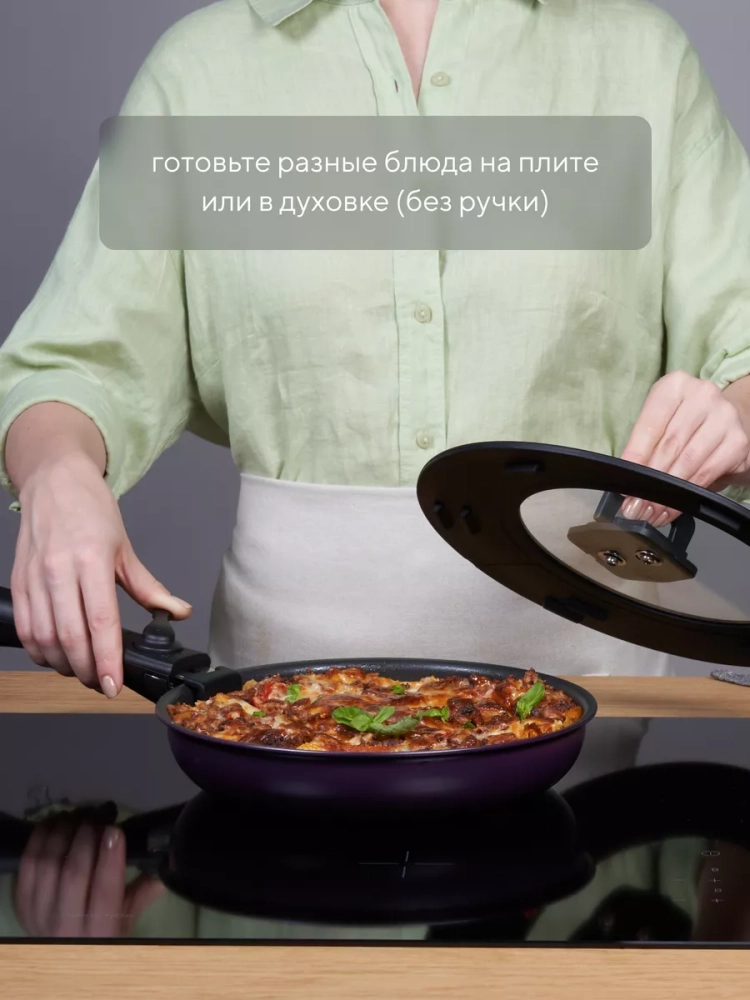Посуда подходит для использования на индукционной, электрической, керамической, газовой плите. Можно использовать в духовке и мыть в посудомоечной машине без использования ручки.