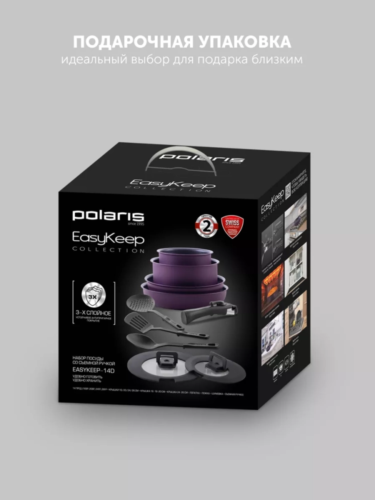 Профессиональный набор посуды Easy Keep-14D от Polaris - это уникальная коллекция, которая обеспечит незаменимую помощь на кухне благодаря своей многофункциональности. Главное преимущество набора заключается в удобстве приготовления и компактности при хранении, что обязательно оценят все хозяйки!