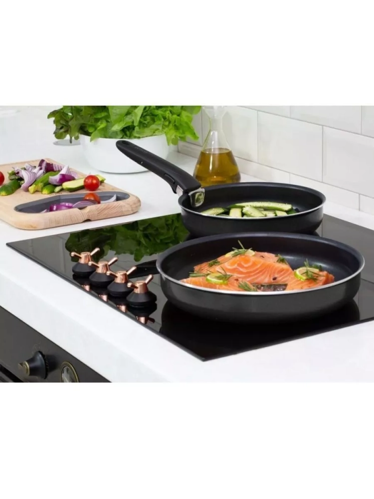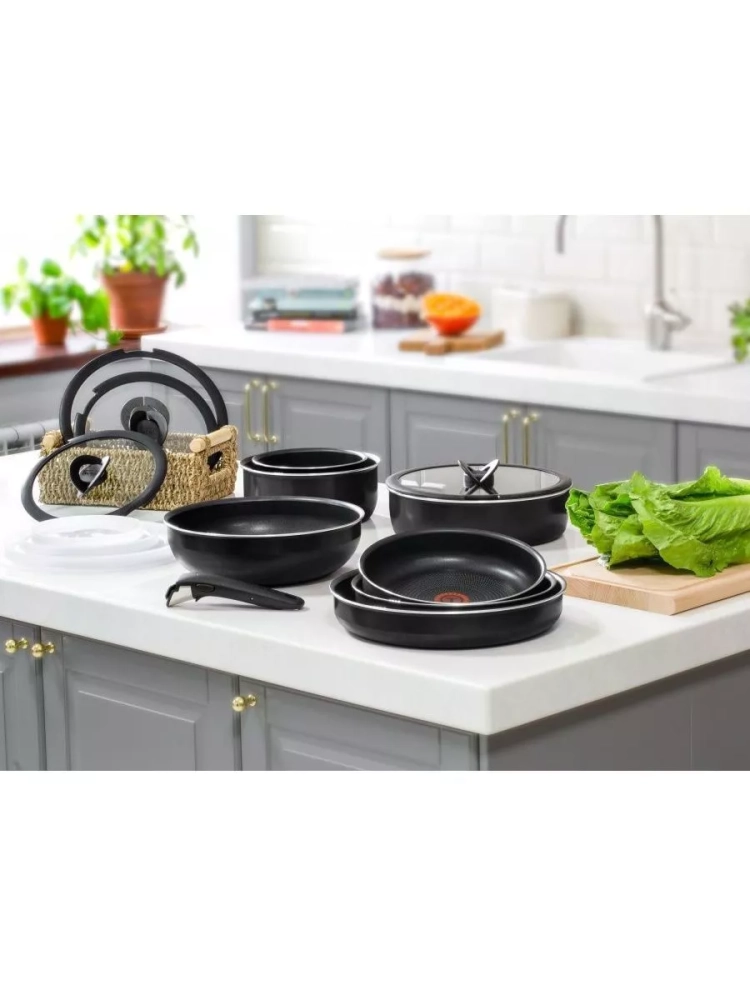 Посуда совместима с газовыми, электрическими и стеклокерамическими плитами, кроме индукционных. Наша цель – создавать надежные продукты, которые прослужат долго и не навредят окружающей среде, благодаря используемым перерабатываемым материалам, которые не содержат PFOA, свинец и кадмий. Совершенствуйте ваш кулинарный навык с набором посуды Ingenio Black от Tefal!
