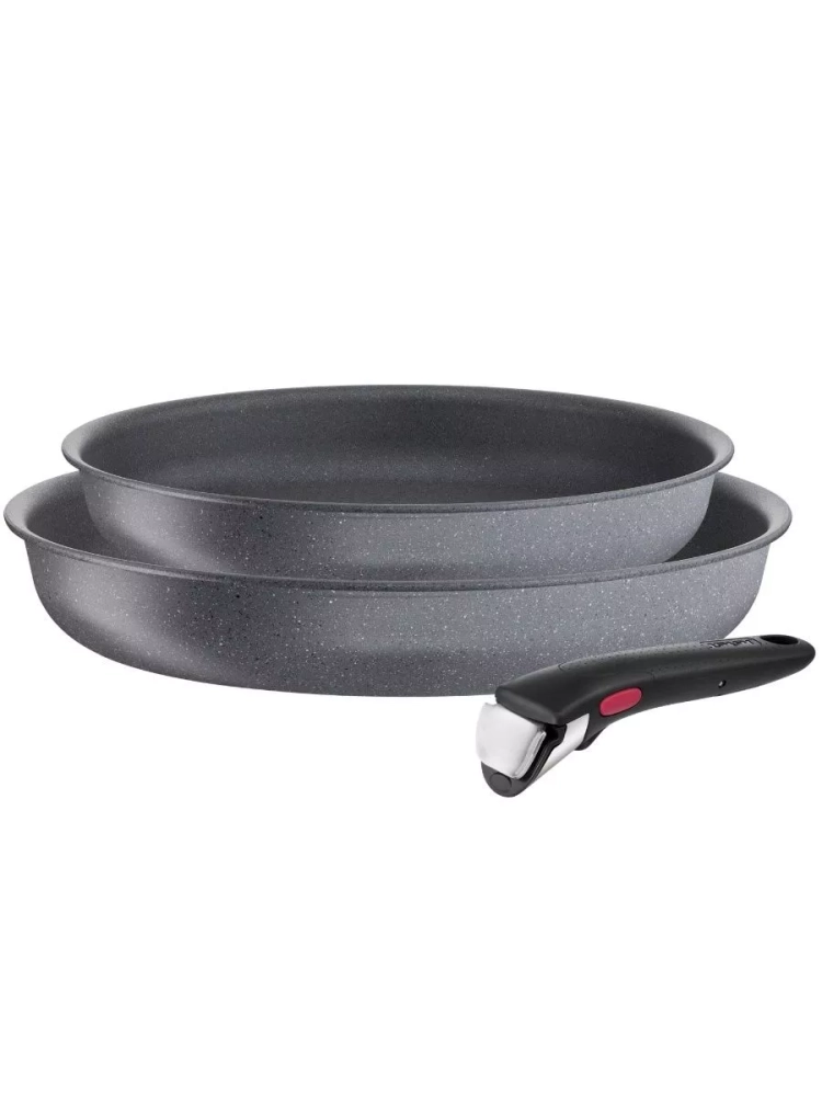 В комплекте есть 2 большие сковороды для жарки 24 и 28 см, на них нанесено антипригарное покрытие Mineralia+, которое усилено минеральными частицами. Благодаря этому посуда прослужит дольше и вы с легкостью сможете готовить полезные блюда без масла день за днем. Также сковородки оснащены специальным индикатором Thermo-Signal, который становится полностью красным, когда изделие достигает оптимальной температуры для начала готовки. Усовершенствованное индукционное дно Thermo-Fusion гарантирует быстрый и равномерный нагрев всей посуды, каждый раз, обеспечивая безупречный результат. Сковороды Тефаль подойдут для использования на газовых, электрических, стеклокерамических и индукционных плитах. А антипригарное покрытие внутри и снаружи позволит с легкостью очищать посуду для кухни от остатков пищи после каждого использования. Кроме того, в наборе с металлической посудой есть съемная ручка, предназначенная для частого и интенсивного использования: ее 3-ступенчатая система фиксации выдерживает вес до 10 кг и имеет 10-летнюю гарантию качества.