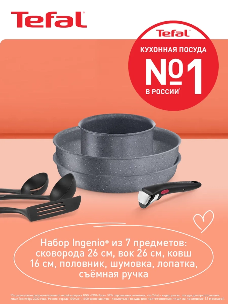 В комплекте есть 2 классические сковороды 26 см и ковш 16 см, на них нанесено антипригарное покрытие Mineralia+, которое усилено минеральными частицами. Также в наборе есть все необходимые аксессуары, которые облегчат процесс готовки. Благодаря этому посуда прослужит дольше и вы с легкостью сможете готовить полезные блюда без масла день за днем. Также сковородки оснащены специальным индикатором Thermo-Signal, который становится полностью красным, когда изделие достигает оптимальной температуры для начала готовки. Усовершенствованное индукционное дно Thermo-Fusion гарантирует быстрый и равномерный нагрев всей посуды, каждый раз, обеспечивая безупречный результат. Сковороды Тефаль подойдут для использования на газовых, электрических, стеклокерамических и индукционных плитах. А антипригарное покрытие внутри и снаружи позволит с легкостью очищать посуду для кухни от остатков пищи после каждого использования. Кроме того, в наборе с металлической посудой есть съемная ручка, предназначенная для частого и интенсивного использования: ее 3-ступенчатая система фиксации выдерживает вес до 10 кг и имеет 10-летнюю гарантию качества.