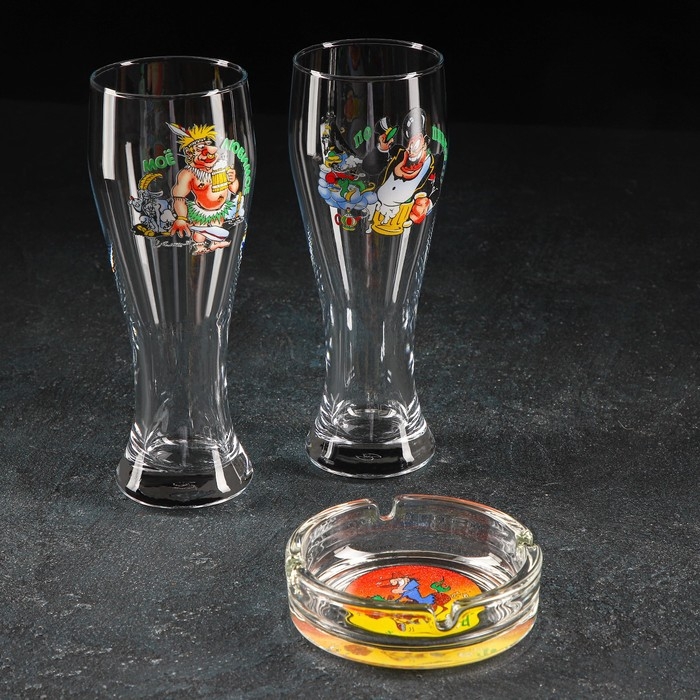 Набор «Приколы», 2 бокала для пива 300 мл, пепельница