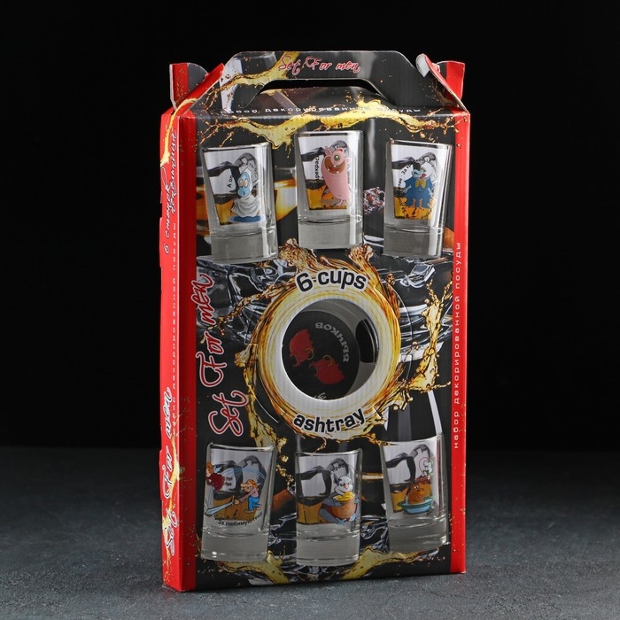 Набор «Приколы», 7 предметов: 6 стопок 50 мл, пепельница