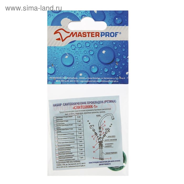 Набор прокладок для смесителя Сантехник № 1 MasterProf резина ИС.130255 предназначен для ремонта смесителей, гибкой подводки, душевых шлангов и кранов.