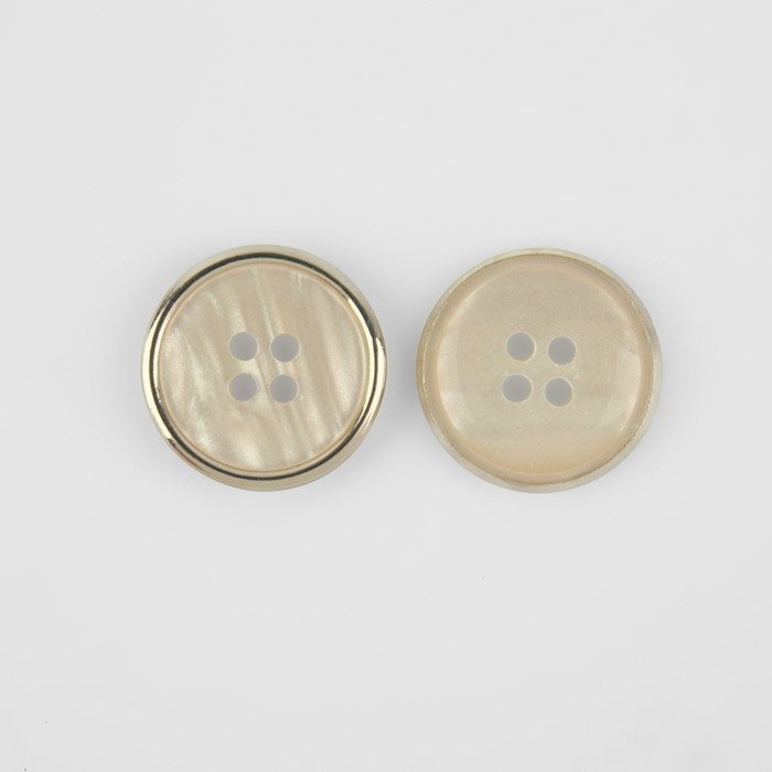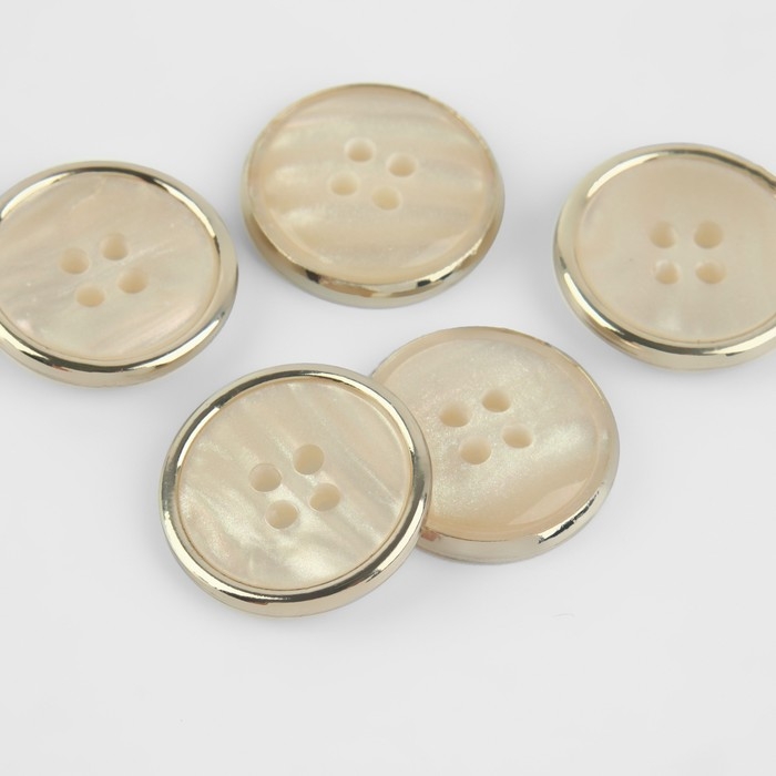 Набор пуговиц, 4 прокола, d = 18 мм, 5 шт, цвет молочный/золотой