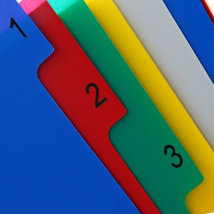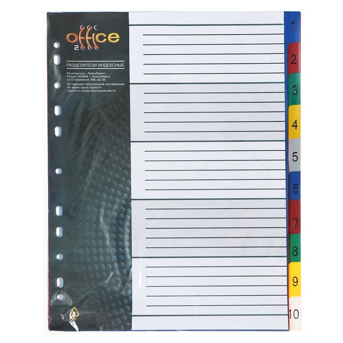 Набор разделителей листов А4+ Office-2000, цифровой 1-10, цветные, пластик 140 мкм