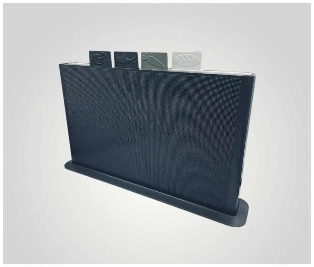 Разделочные доски незаменимый аксессуар любой кухни. Они позволяют не только быстро разделывать продукты, но и украшают интерьер. Разделочные доски помогают сохранить стол в хорошем состоянии и не позволяют ножам быстро затупиться. Однако, трудно найти идеальный вариант, который сочетает в себе все качества. Но мы нашли такой это доски разделочные набор на подставке. Доски разделочные могут быть не только удобными и функциональными, но и красивыми. В наборе досок разделочных на подставке всегда есть дизайнерские решения, которые позволят подобрать наиболее подходящий вариант в соответствии с интерьером кухни. Доски кухонные не деревянные, а пластиковые набор включает в себя 4 предмета одинакового размера. Для каждого продукта найдется своя доска разделочная пластиковая. Потому что каждая доска оснащена значком для хлеба мяса рыбы и овощей. Товар не занимает много места и всегда под рукой. Небольшой край прекрасно удерживает крошки и жидкость. Доски разделочные пластиковые это отличный подарок для мамы бабушки на любой праздник 8 марта новоселье. Набор досок разделочных на подставке поможет не только резать продукты, но и подчеркнет уют на кухне. Данный товар можно мыть в посудомоечной машине или с помощью губки. Не откладывайте покупку доски разделочной на подставке на потом, она станет незаменимым помощником и подарком на вашей кухне. Набор разделочных досок на подставке это лучший выбор, который сделает вашу жизнь на кухне гораздо проще и приятнее. Приобретайте набор досок разделочных на подставке сейчас и наслаждайтесь простотой в приготовлении еды.