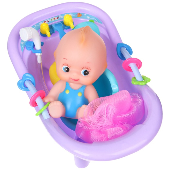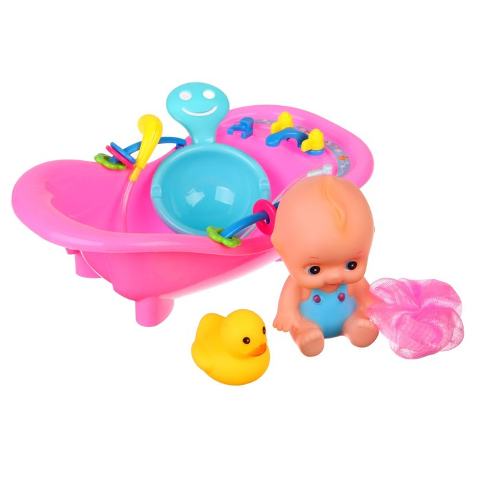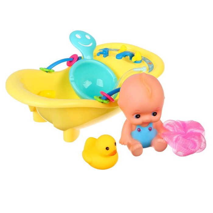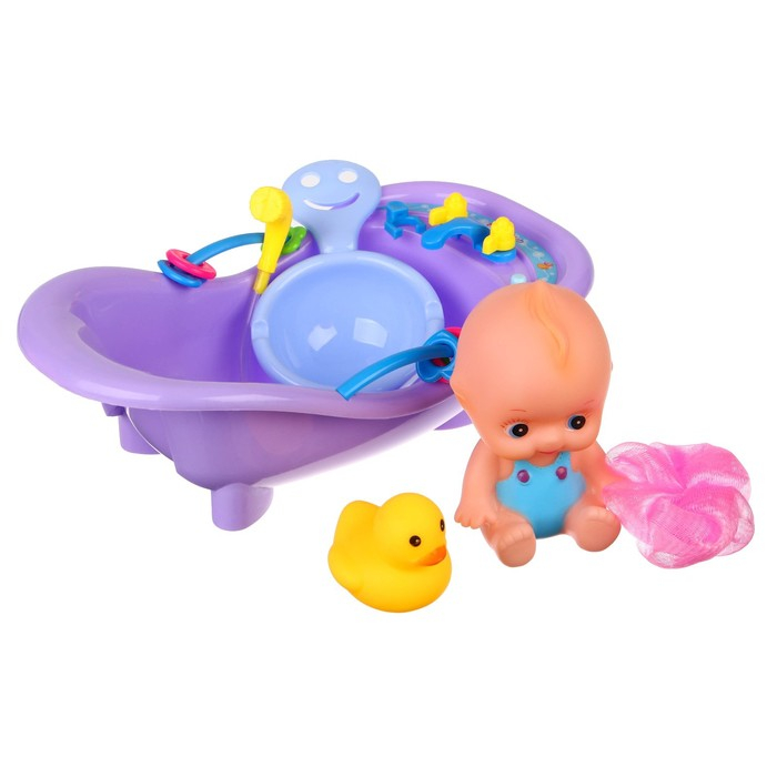 Набор резиновых игрушек для ванны «Пупс в ванне», с пищалкой, 5 шт, цвет МИКС, Крошка Я