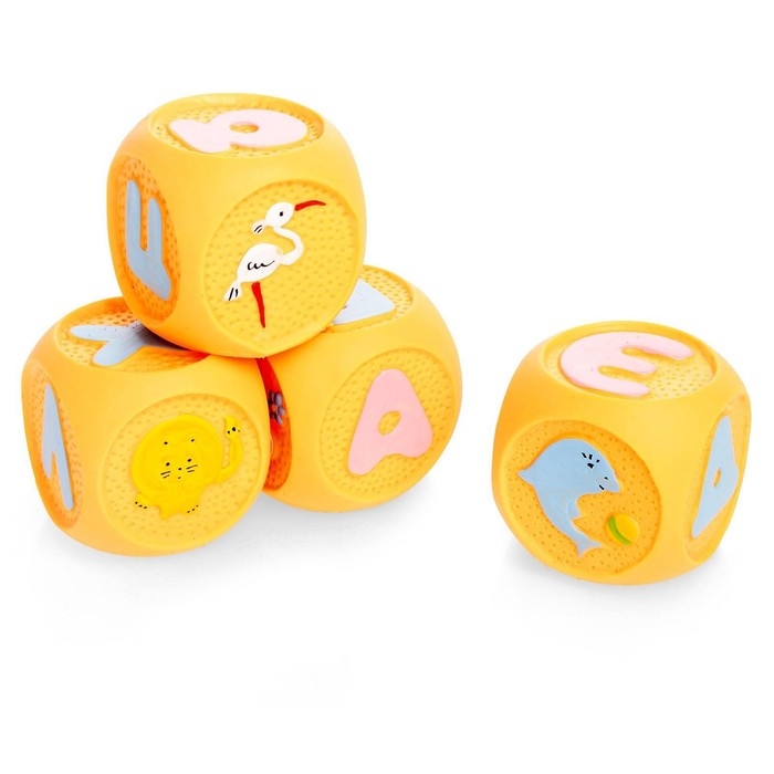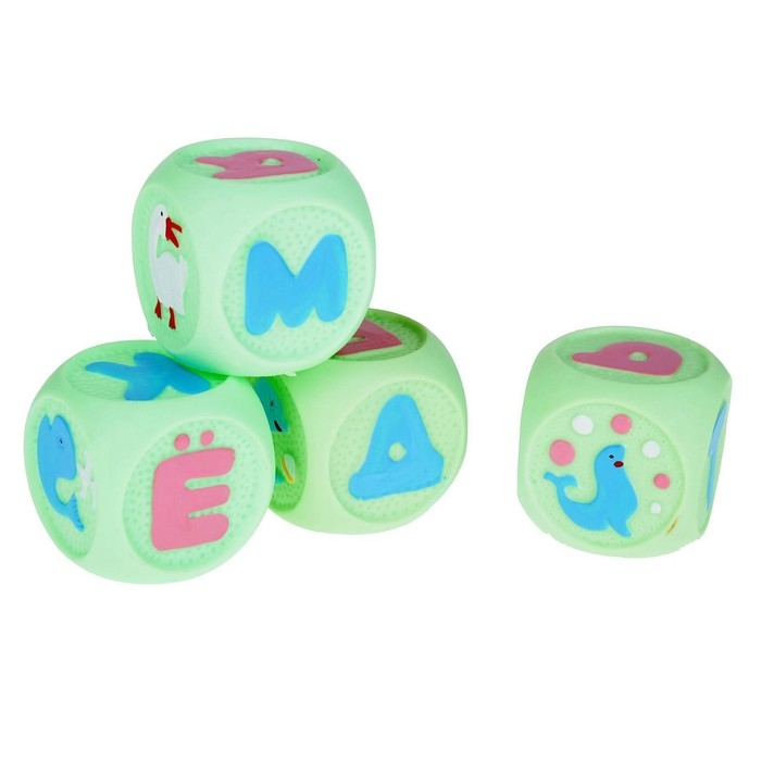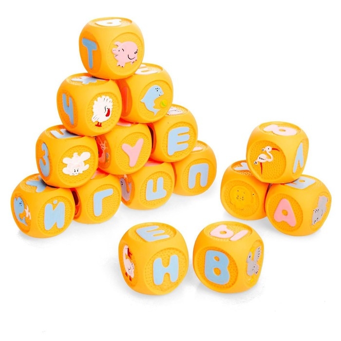 Набор ярких резиновых кубиков с пищалками внутри привлечёт внимание и займёт малыша познавательной игрой! Кубики размером 5 × 5 см удобно держать в руках и интересно разглядывать. На всех четырёх сторонах — выпуклые красочные изображения животных и буквы, разделённые по цветам: красные — гласные, синие — согласные. В игровой форме кроха быстро запомнит названия животных и русский алфавит, научится складывать слоги, а затем и целые слова.