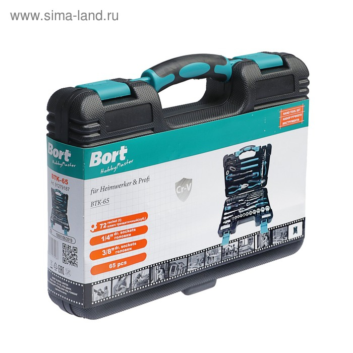 Набор ручного инструмента Bort BTK-65, сталь CrV, 65 предметов в чемодане