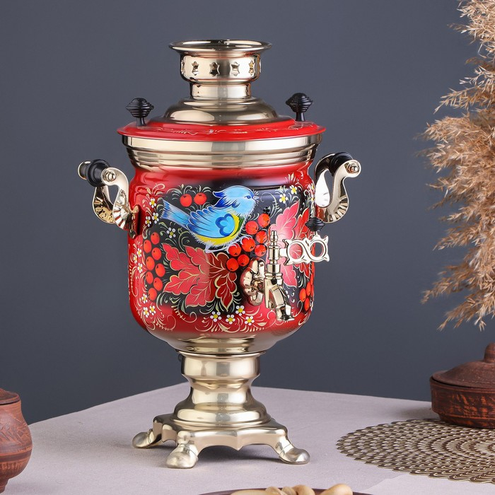 Набор «Рябина», 3 предмета, самовар 3 л, заварочный чайник 0,7 л, поднос