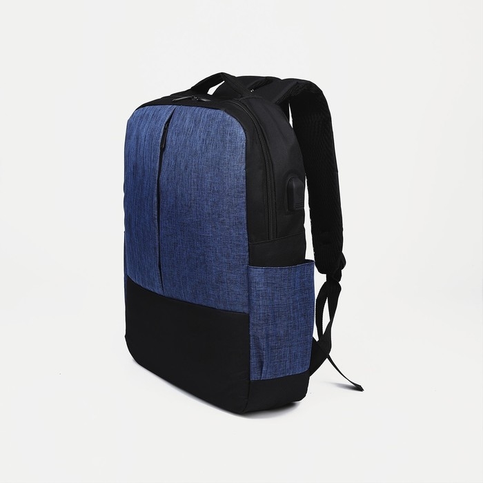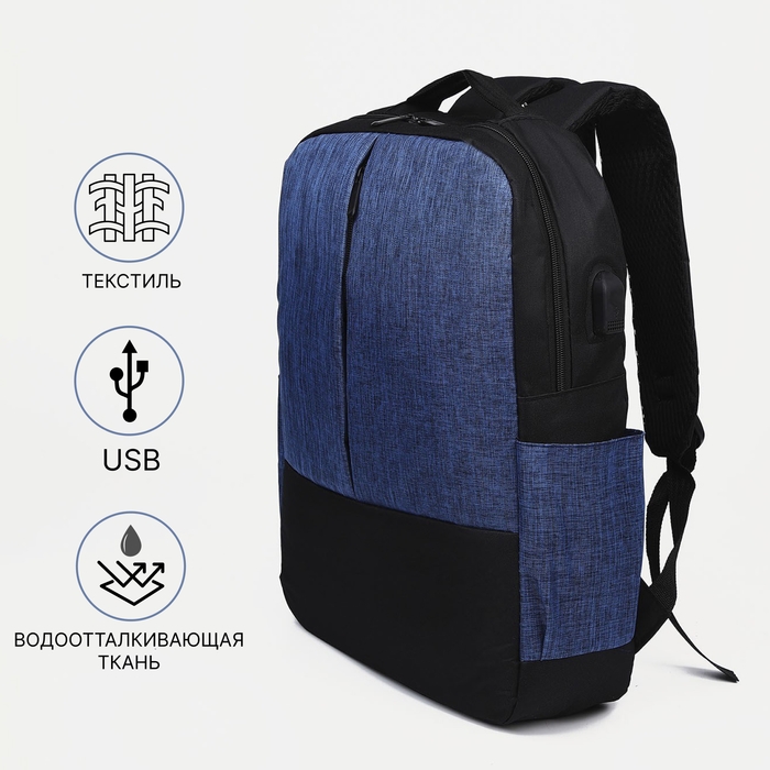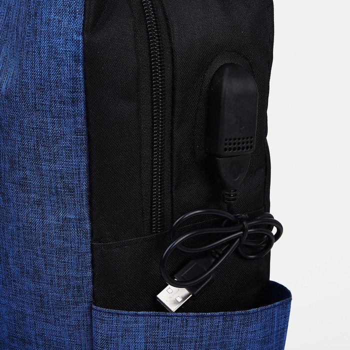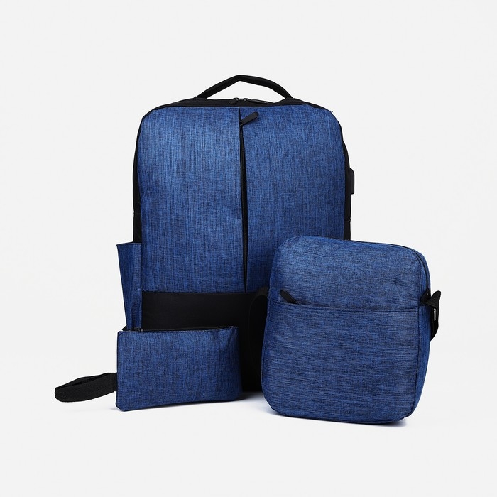 Набор рюкзак мужской на молнии с USB, наружный карман, косметичка, сумка, цвет синий