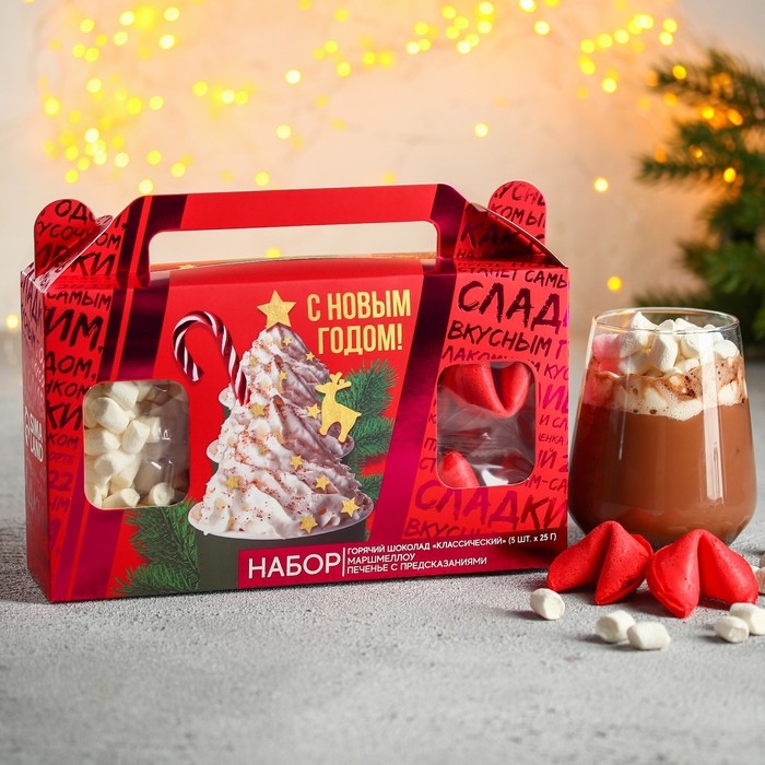Набор «С новым годом»: горячий шоколад 25 г х 5 шт., маршмеллоу 50 г., печенье с предсказаниями 24 г.
