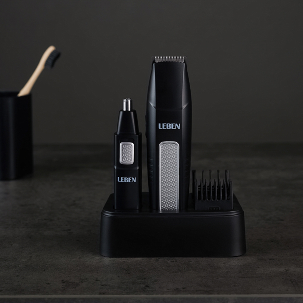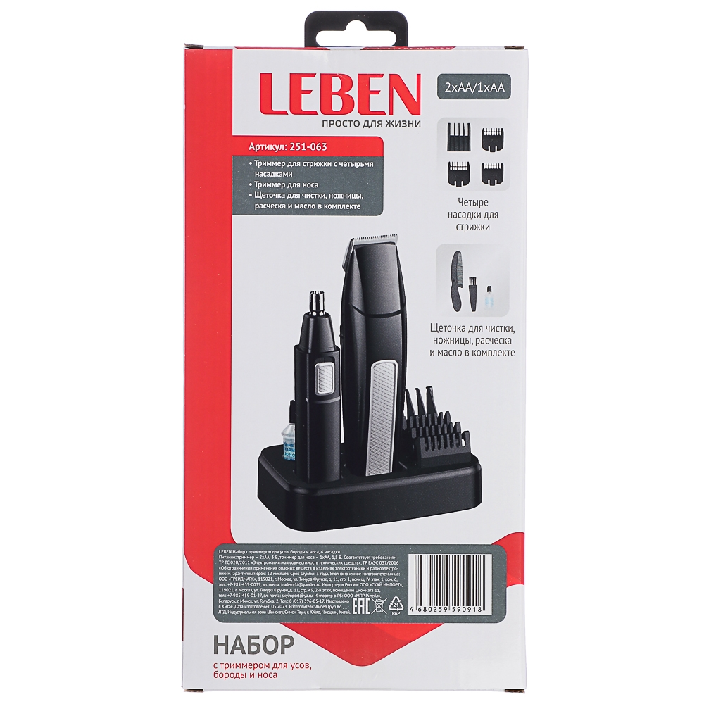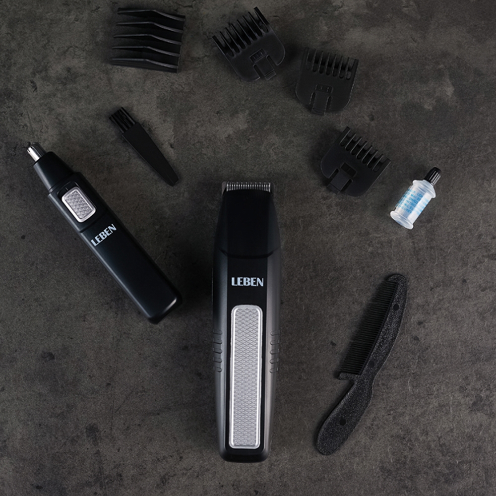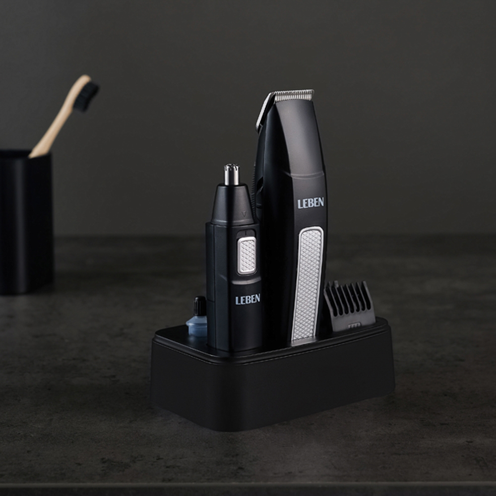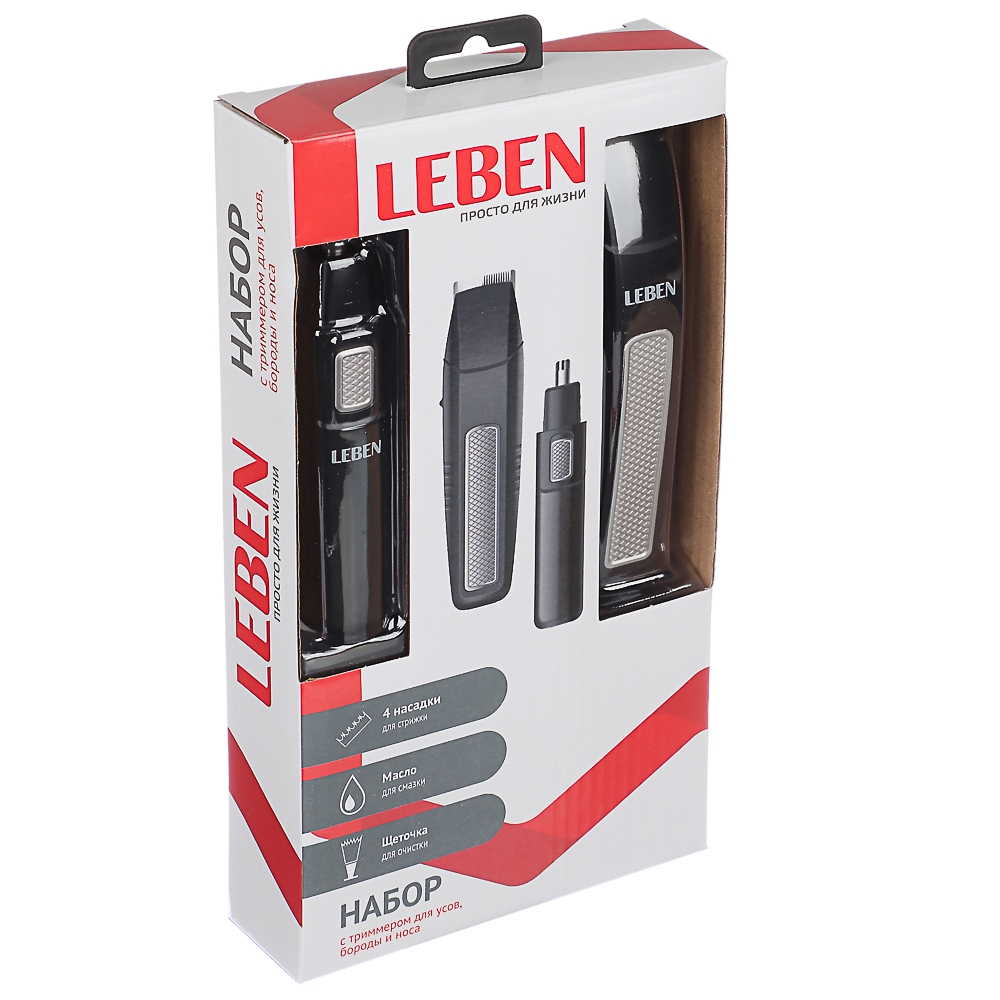 Машинка для корректировки усов и бороды LEBEN с аккумуляторным питанием. Лезвия выполнены из качественных материалов, что обеспечит комфорт во время стрижки. Длину стрижки можно варьировать с помощью смены одной из 4 насадок. К тому же в набор входит приспособление для удаления лишних волос в носу и ушах. Чтобы в любой момент подкорректировать свой внешний вид, достаточно купить триммер от LEBEN.