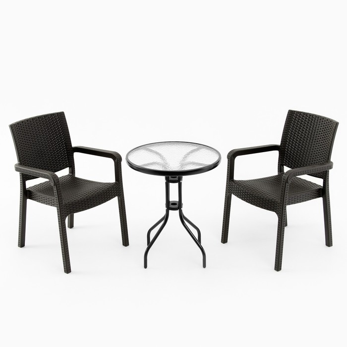 Набор садовой мебели: 2 кресла + стол, коричневый