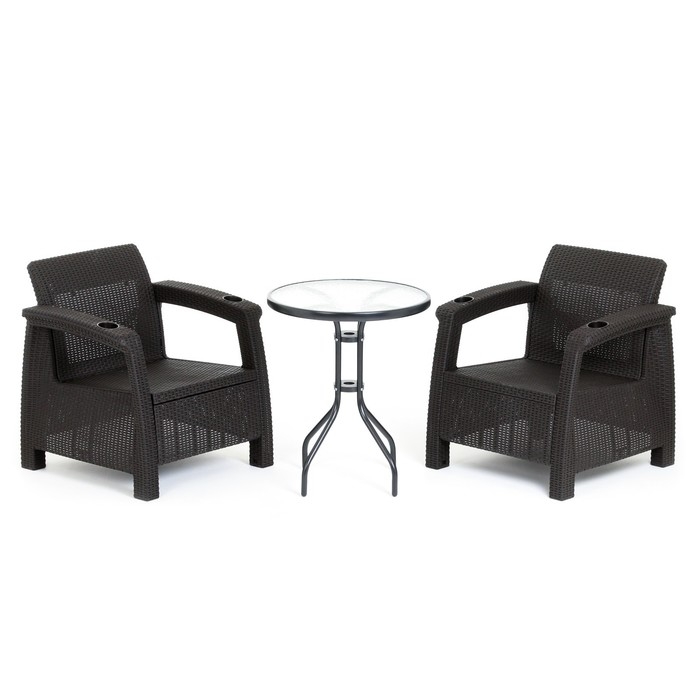 Набор садовой мебели "Ливадия" 3 предмета: 2 кресла, стол, темно-коричневый