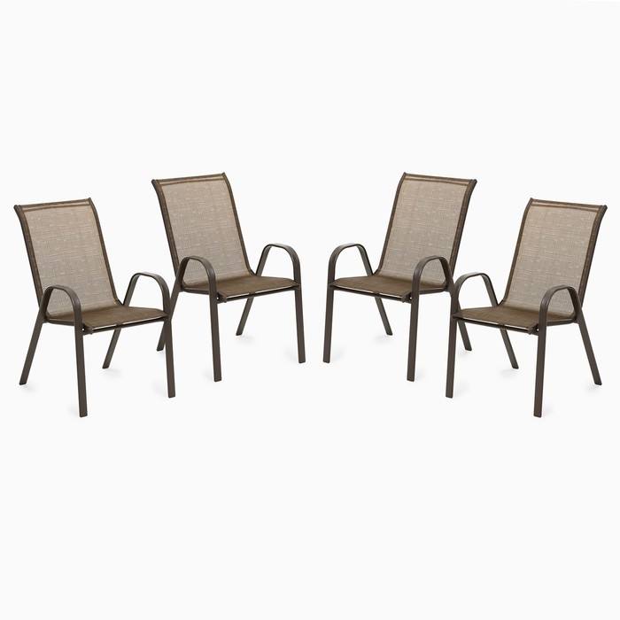 Набор садовой мебели: 4 стула, коричневый, 70 x 54 x 89 см, нагрузка до 120 кг, текстилен