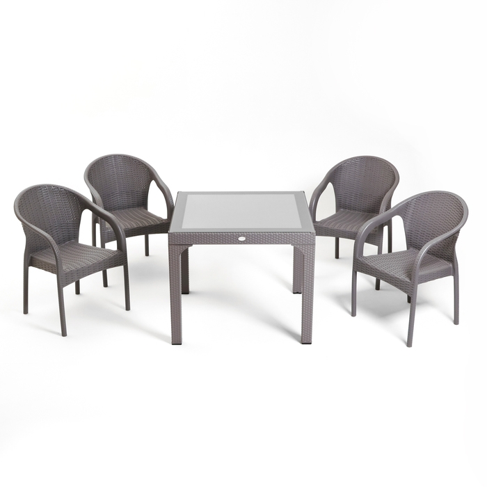 Набор садовой мебели "Феодосия" 5 предметов: стол + 4 кресла, серый