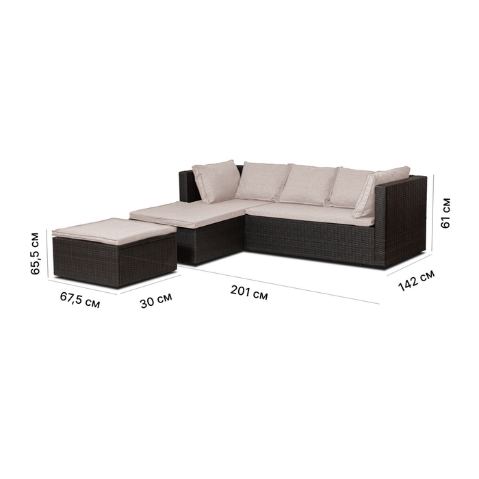 Набор садовой мебели "Флорант": угловой диван, стол, плетение: искусственный ротанг, мокко