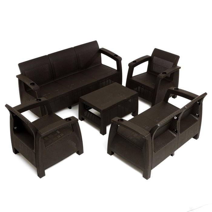 Набор садовой мебели "Ротанг": стол + 2 кресла, диван 2-хместный, диван 3-хместный