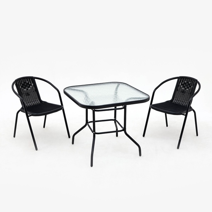 Набор садовой мебели: Стол квадратный 80 х 80 х 73 см и 2 стула черного цвета
