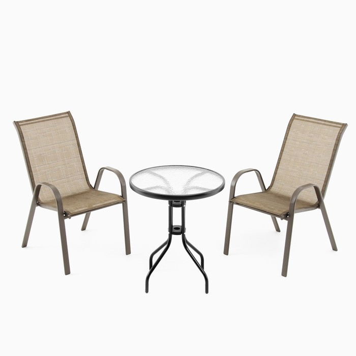 Набор садовой мебели: стол + 2 стула, коричневый, текстилен