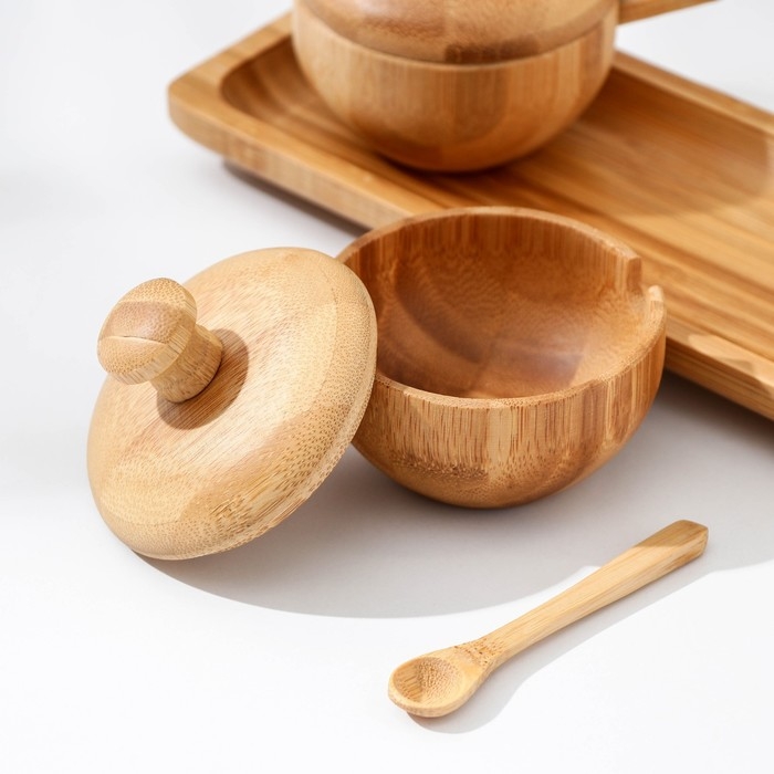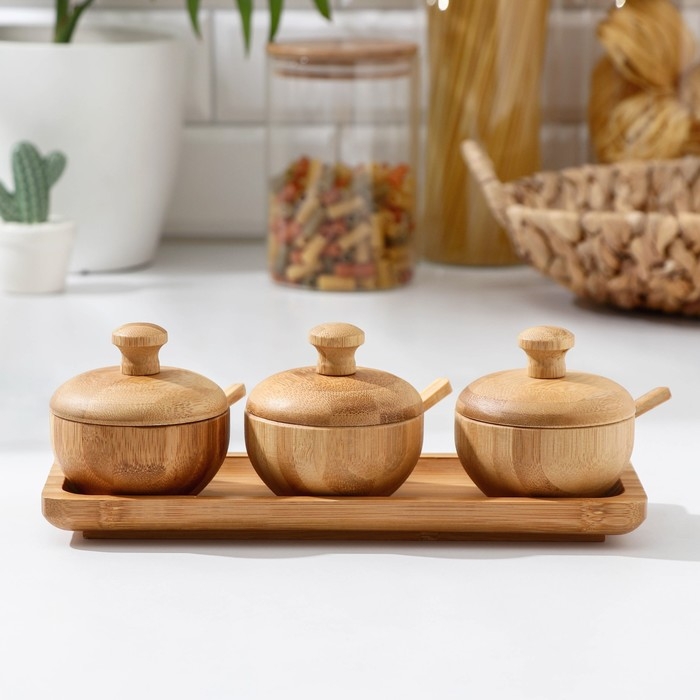 Набор сахарниц, 3 шт, с ложечками, бамбук