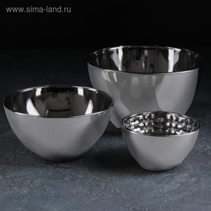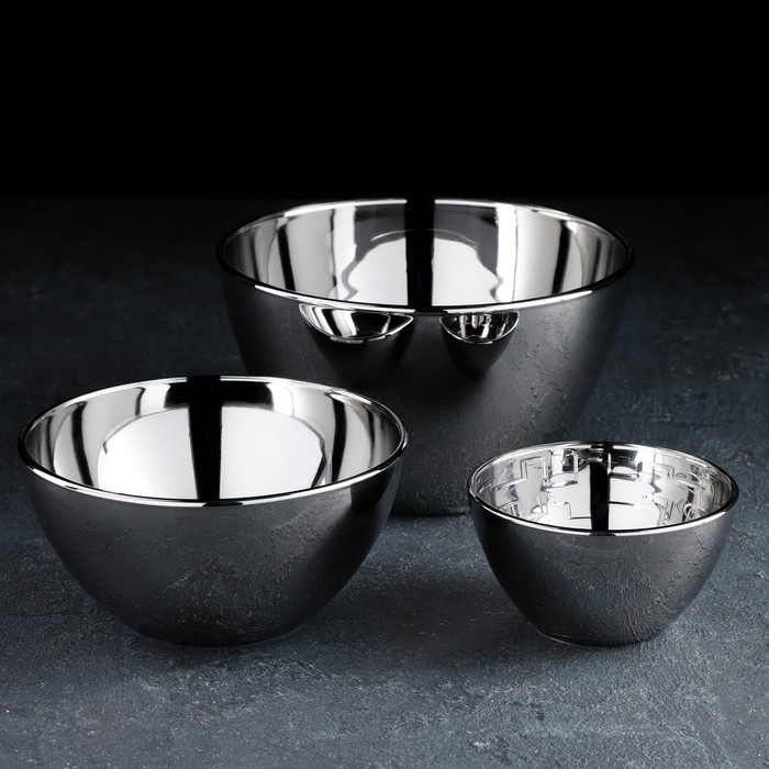 Набор салатников, 3 предмета: 250 мл, 800 мл, 1,75 л, цвет серебряный