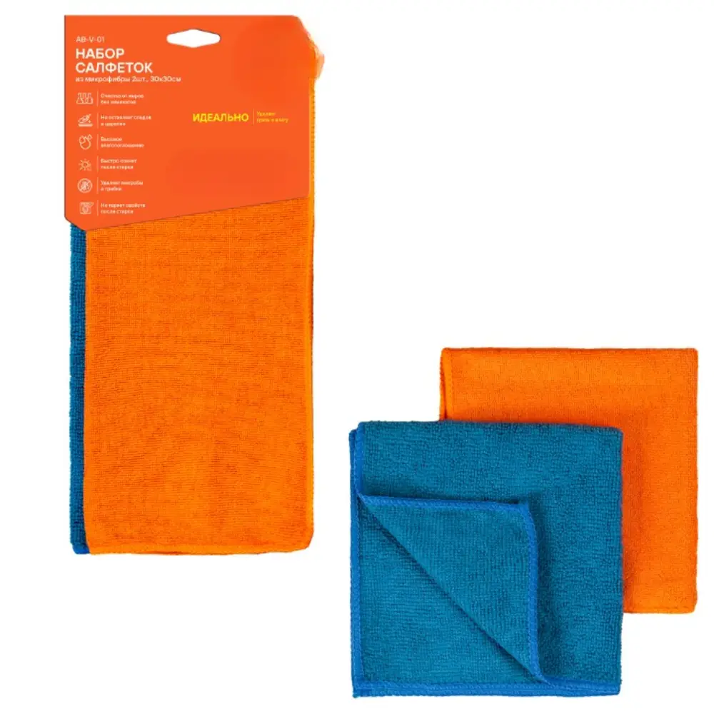 Набор салфеток из микрофибры, синяя и оранжевая (2 шт., 30*30 см)