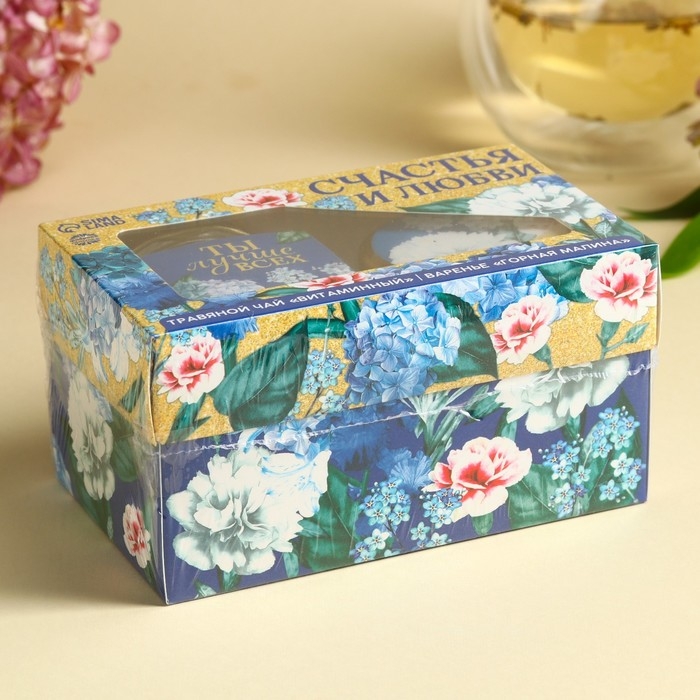 Набор «Счастья и любви»: чай травяной 25 г., варенье с малиной 120 г.