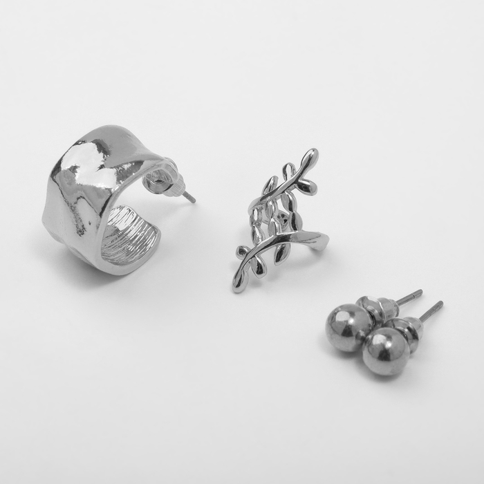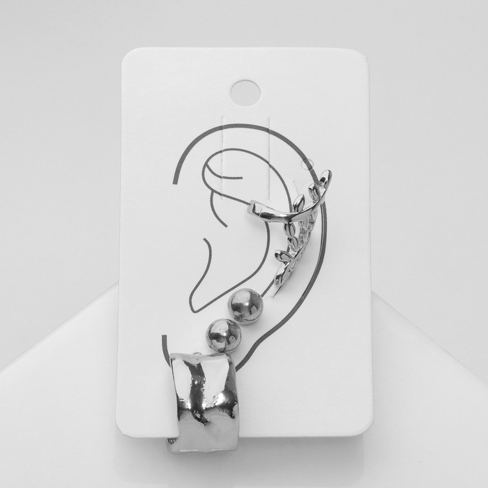 Набор серьги и каффы 4 шт «Нежность» композиция, цвет серебро