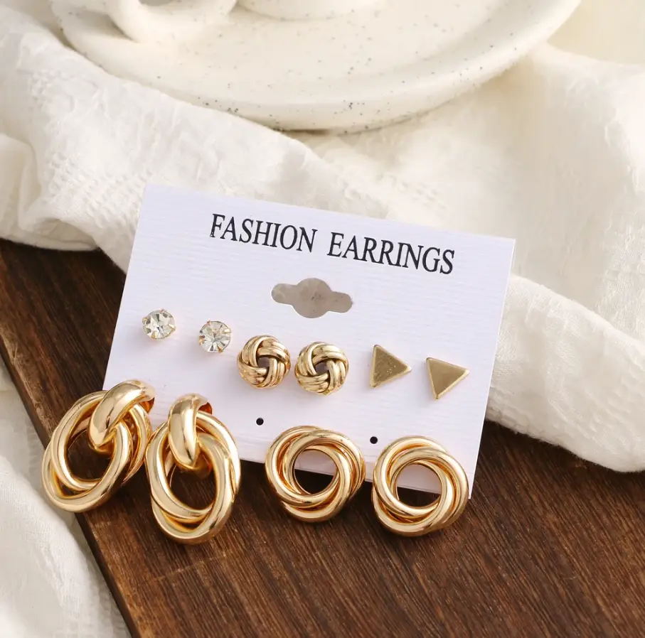 Пусеты 12 пар One year, летний день, цветные в золоте