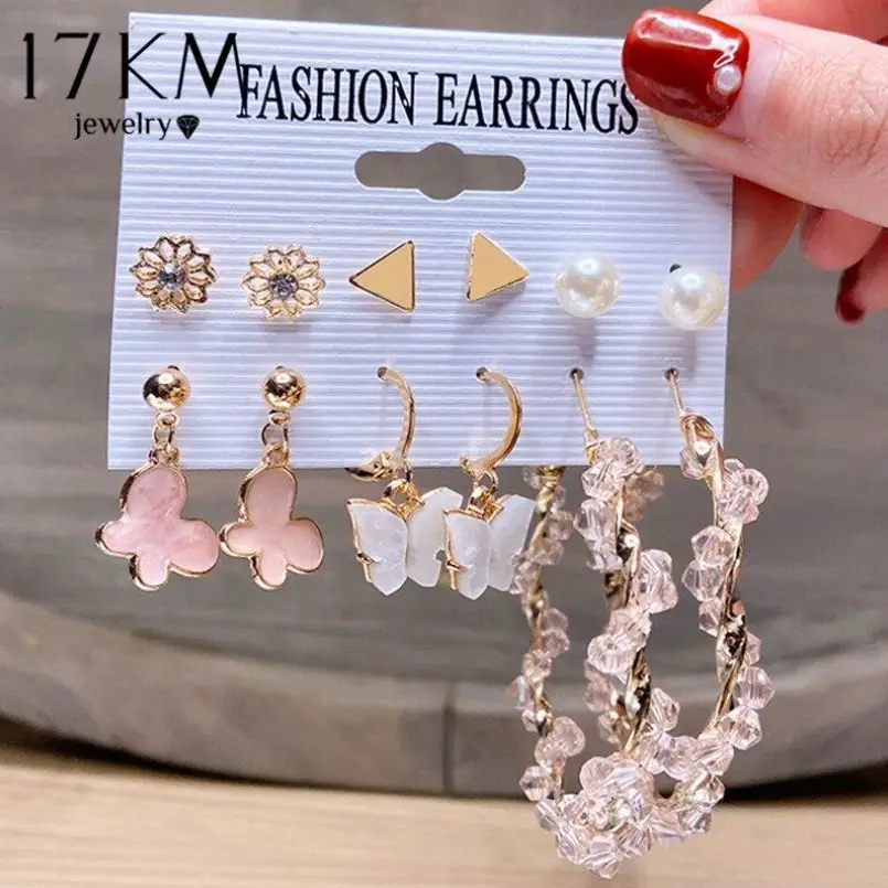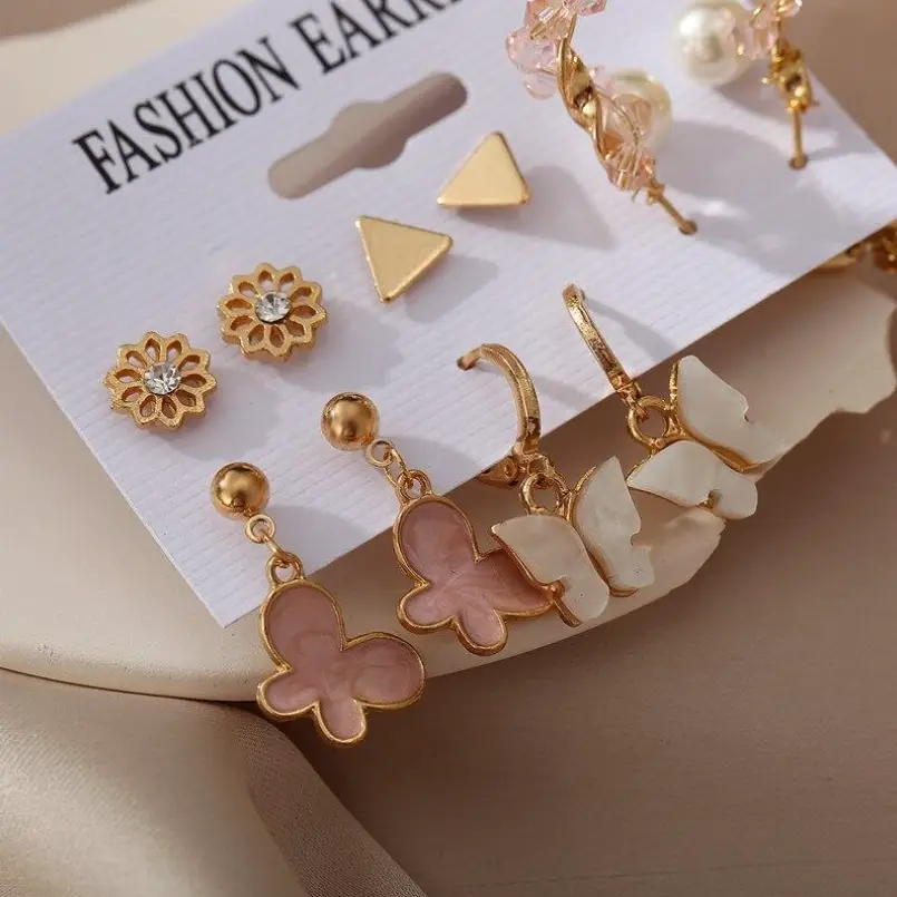 Пусеты 12 пар One year, летний день, цветные в золоте